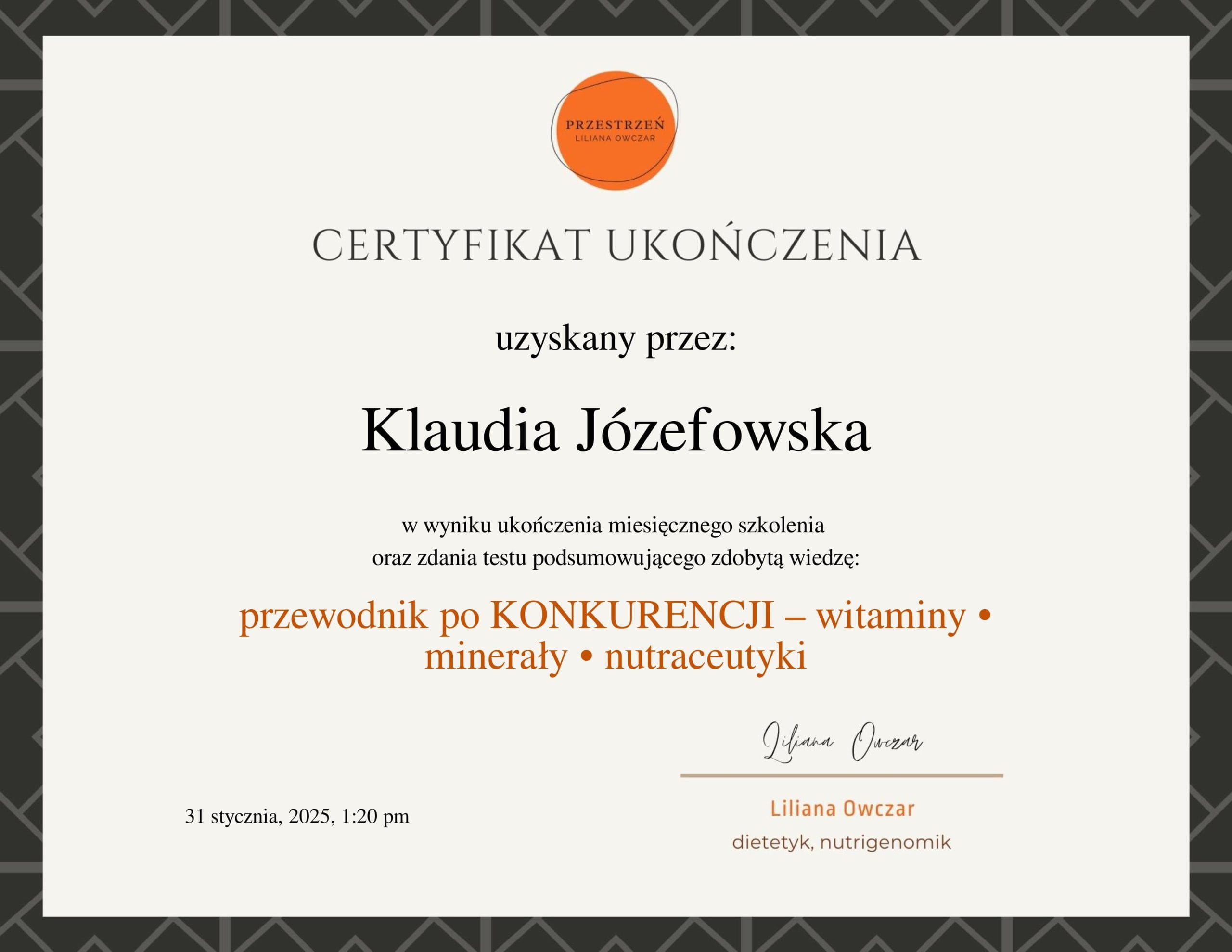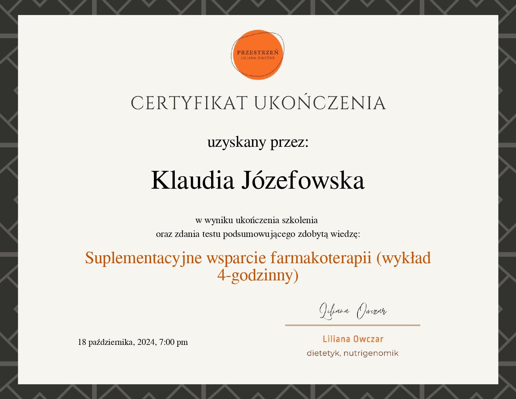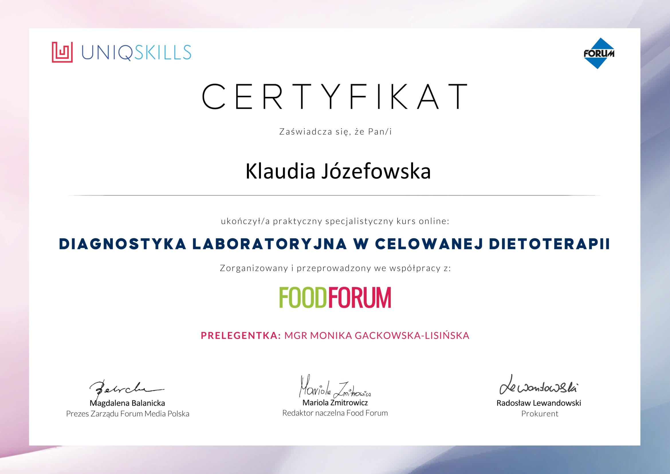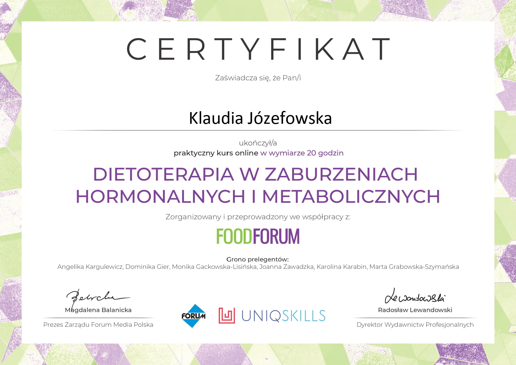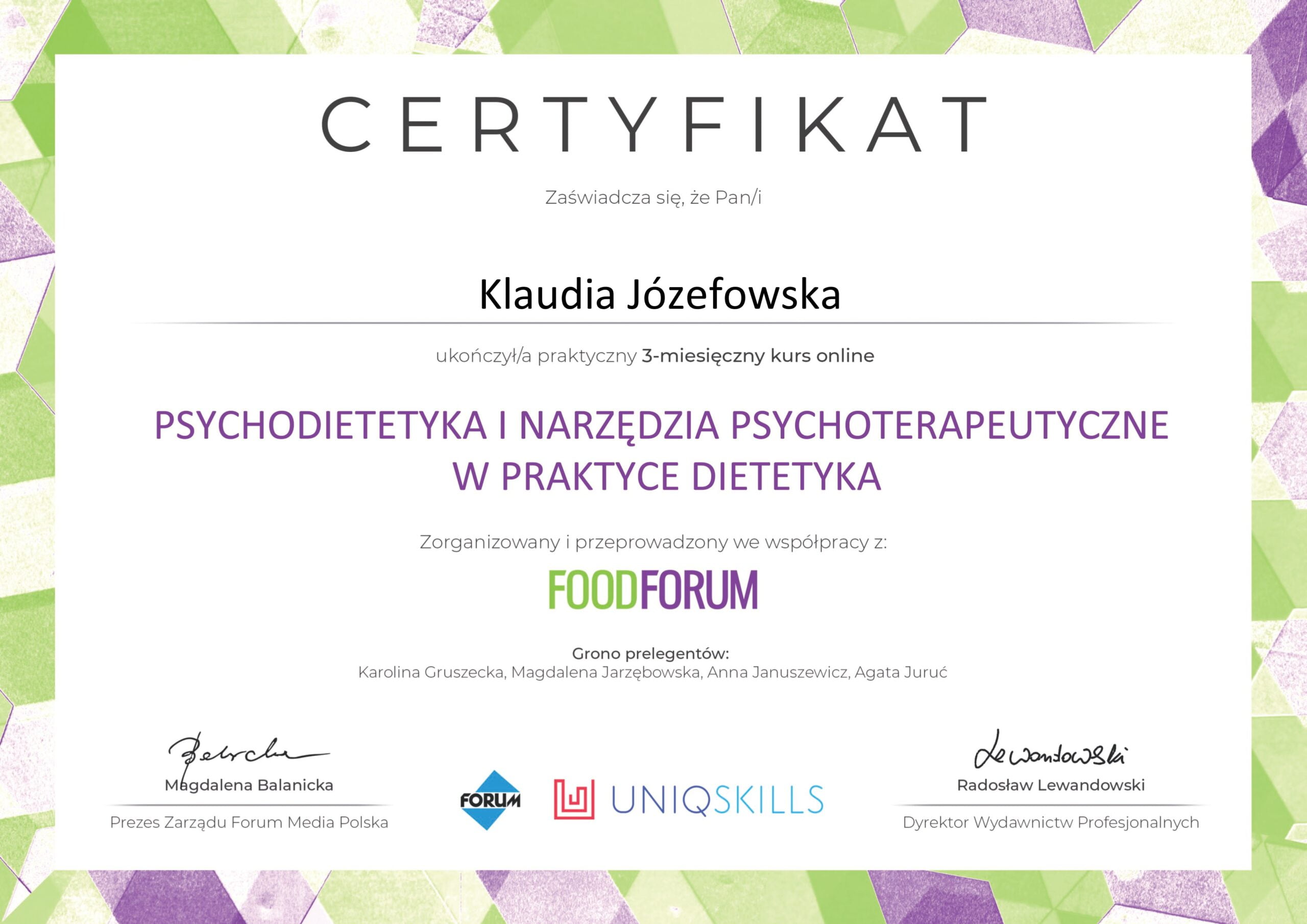 Nazywam się Klaudia Józefowska, jestem magistrem dietetyki i psychodietetykiem.