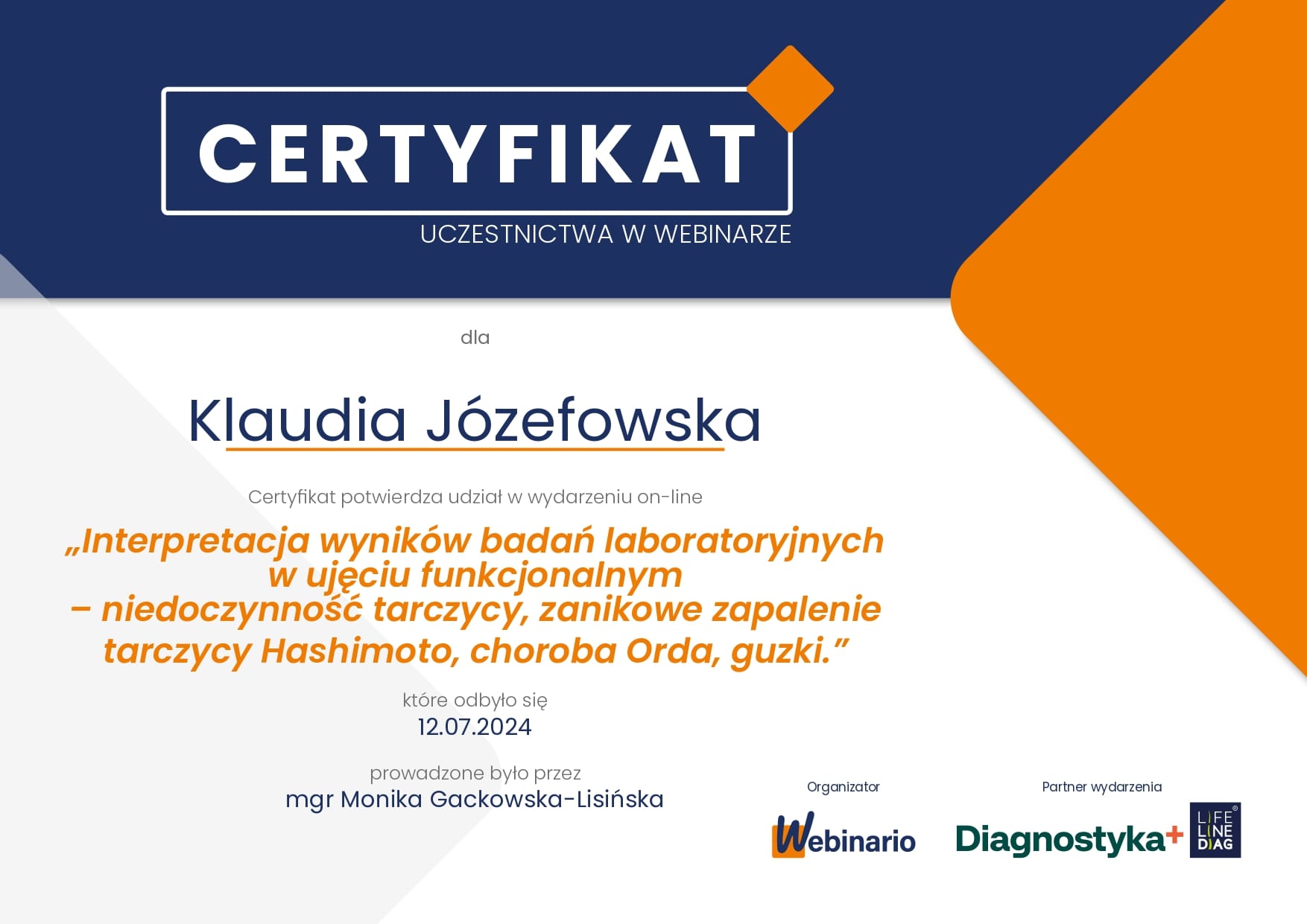 „Interpretacja wyników badań laboratoryjnych w ujęciu funkcjonalnym – niedoczynność tarczycy, zanikowe zapalenie tarczycy Hashimoto, choroba Orda, guzki”